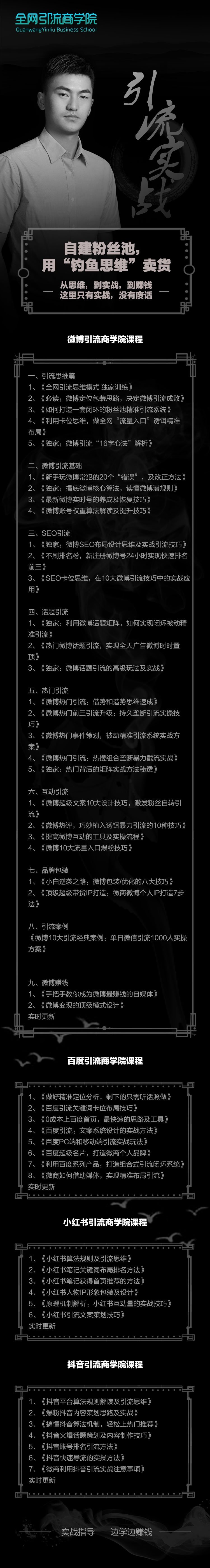如果你正在找寻“微博引流”、“百度引流”、“小红书引流”、“抖音引流”的课程,请你仔细看完这篇文章。全网引流商学院的目标:教会10000个微电商会员掌握“全网实战引流技巧”,并能够持久卖货。