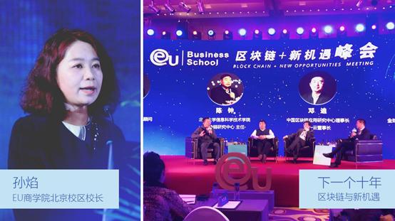 图说:EU商学院北京校区校长孙焰跨年致辞,“区块链+新机遇”峰会探讨下一个十年。
