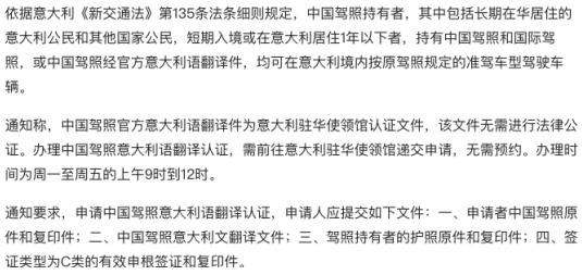 近日意大利内政部交通管理局、意大利基础设施和交通部,以及意大利驻华使领馆联合发布通知,对中国公民及其他国家公民持中国驾照短期入境意大利的驾照使用管理办法做出说明。