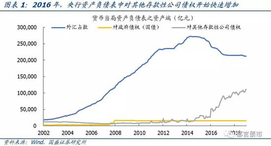 这一过程始于2016年,背景是外汇占款存量下行。银行体系的新增流动性,从此前的外汇占款转向央行投放。表现在央行资产负债表上,外汇占款存量下行,而对其他存款性公司债权科目出现快速上行。2016-2018年底,央行总资产增加54665亿,其中,对其他存款性公司债权增加84891亿,而外汇占款则减少35981亿,两者基本可以解释央行总资产90%的变化。