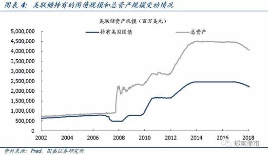 无论是QE之前还是QE之后,美联储持有的国债占总资产的比重都比较高,多数时段内超过50%。QE前后的区别在于,QE之前美联储持有国债绝对规模比较稳定,而QE之后美联储则通过大量增持国债来实现宽松的目的。